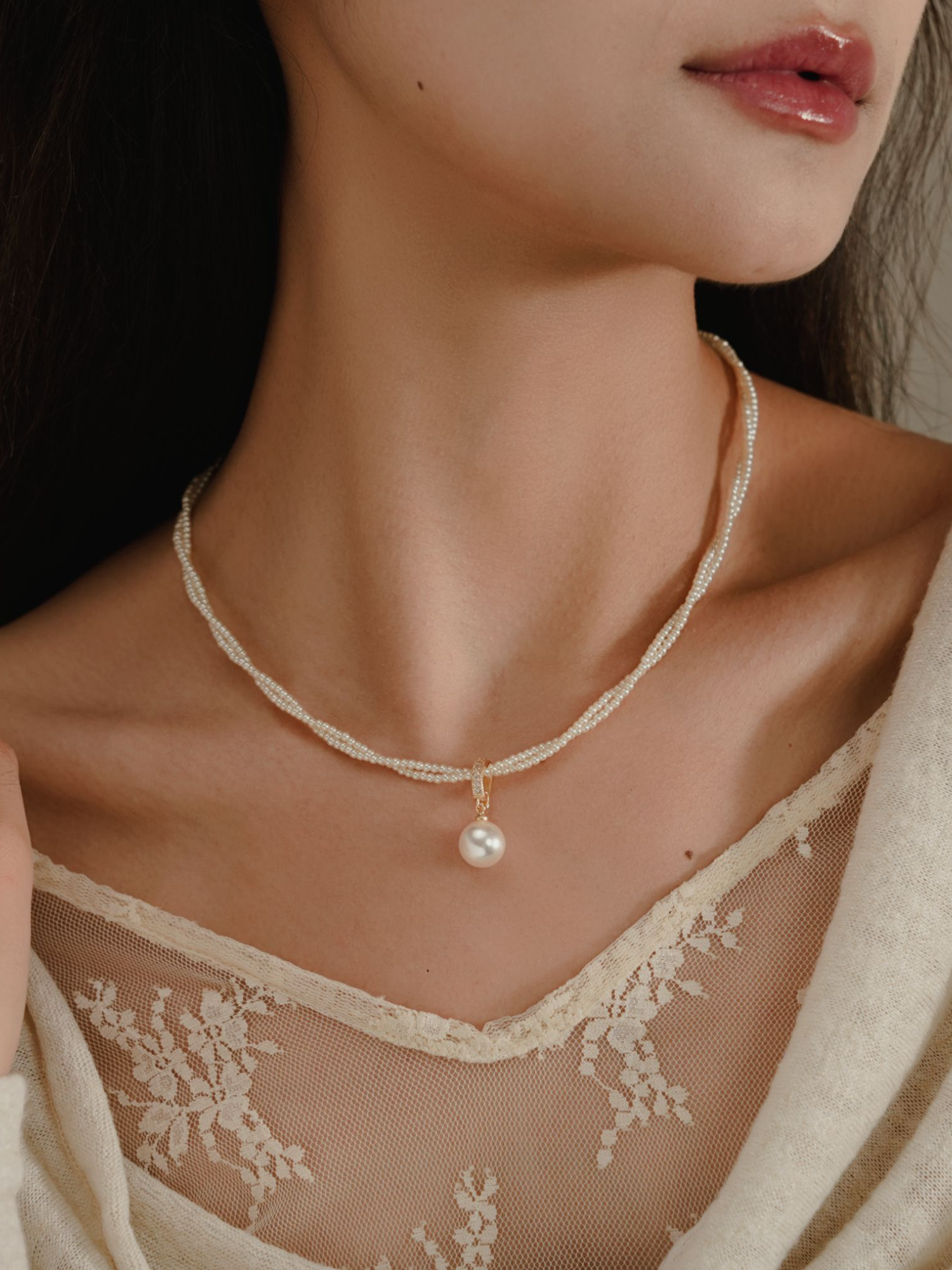 设计感 双层环绕珠珠项链优雅气质时尚饰品