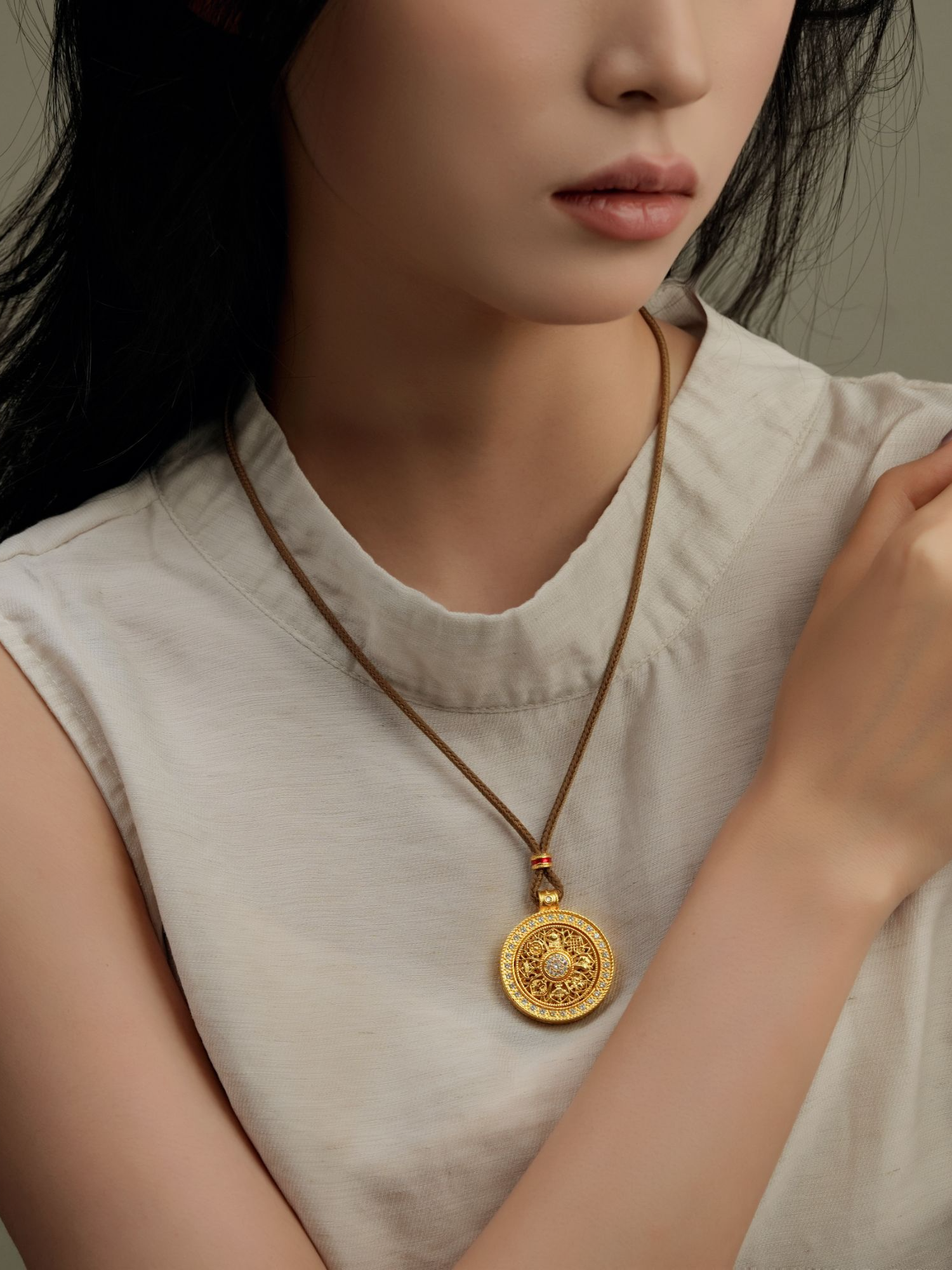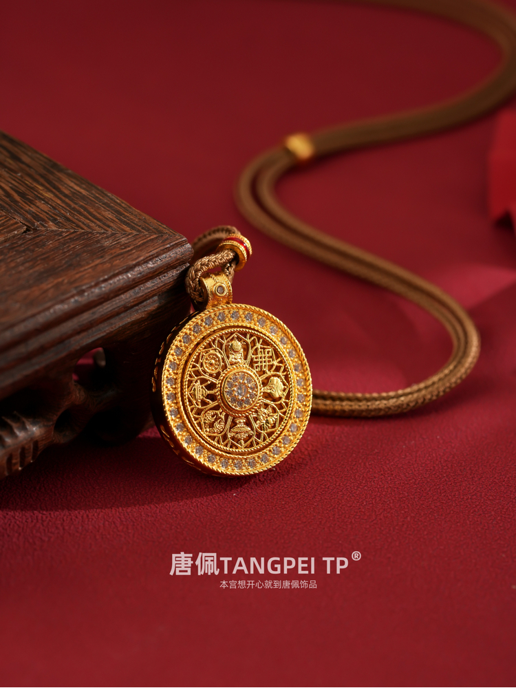 设计感 国风旋转八宝罗盘项链编织毛衣链时尚饰品