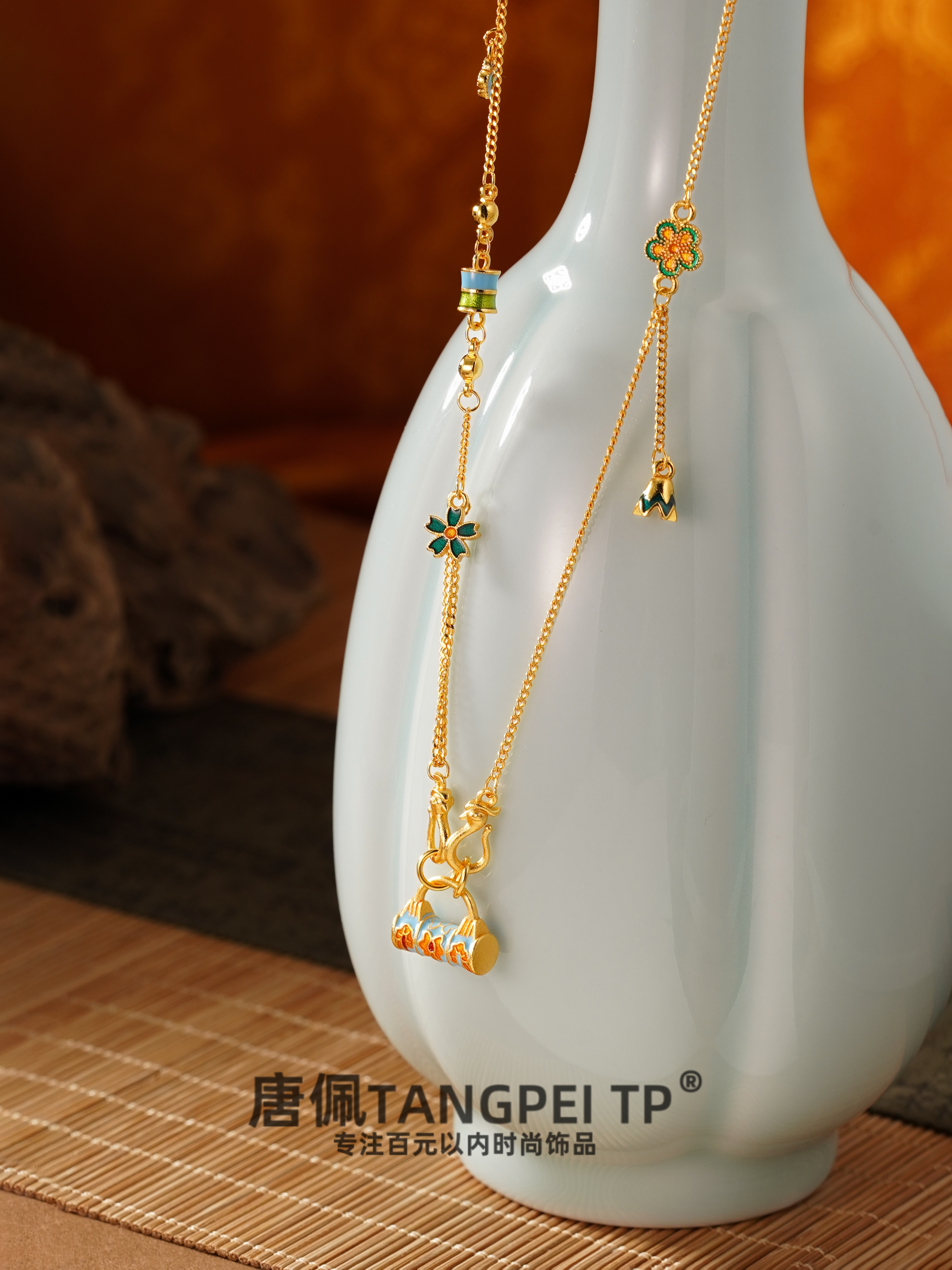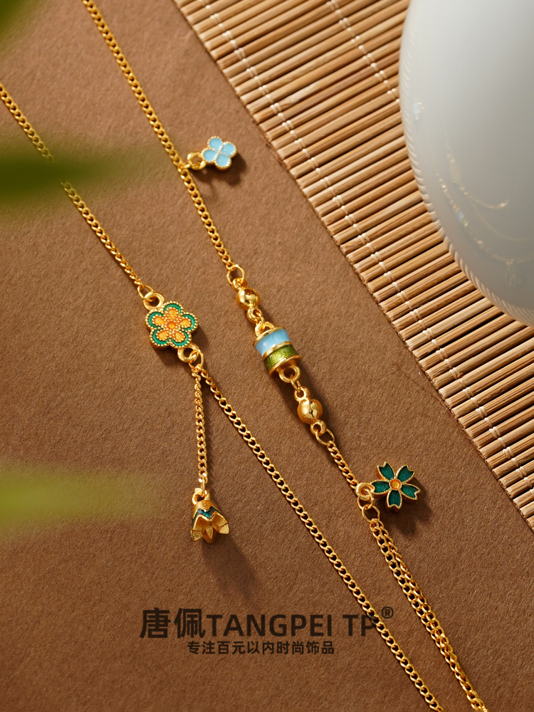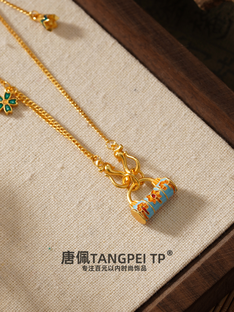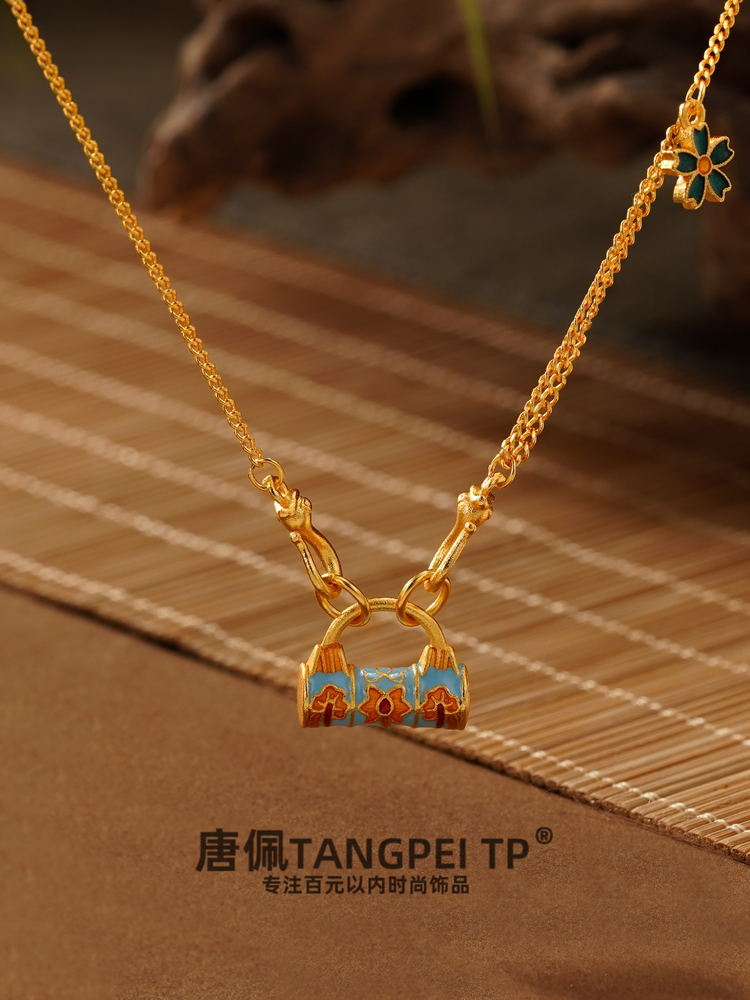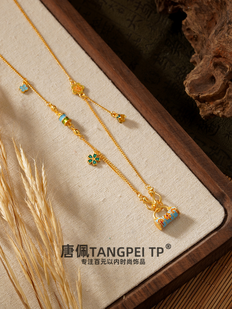 设计感国风如意平安锁花花项链气质锁骨链时尚饰品