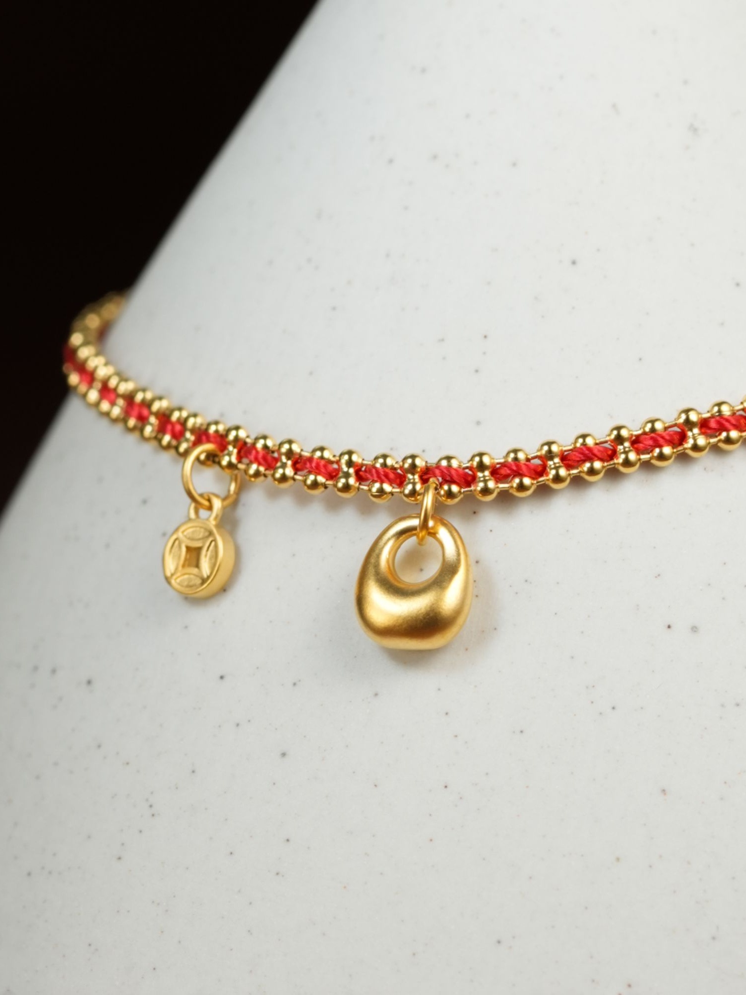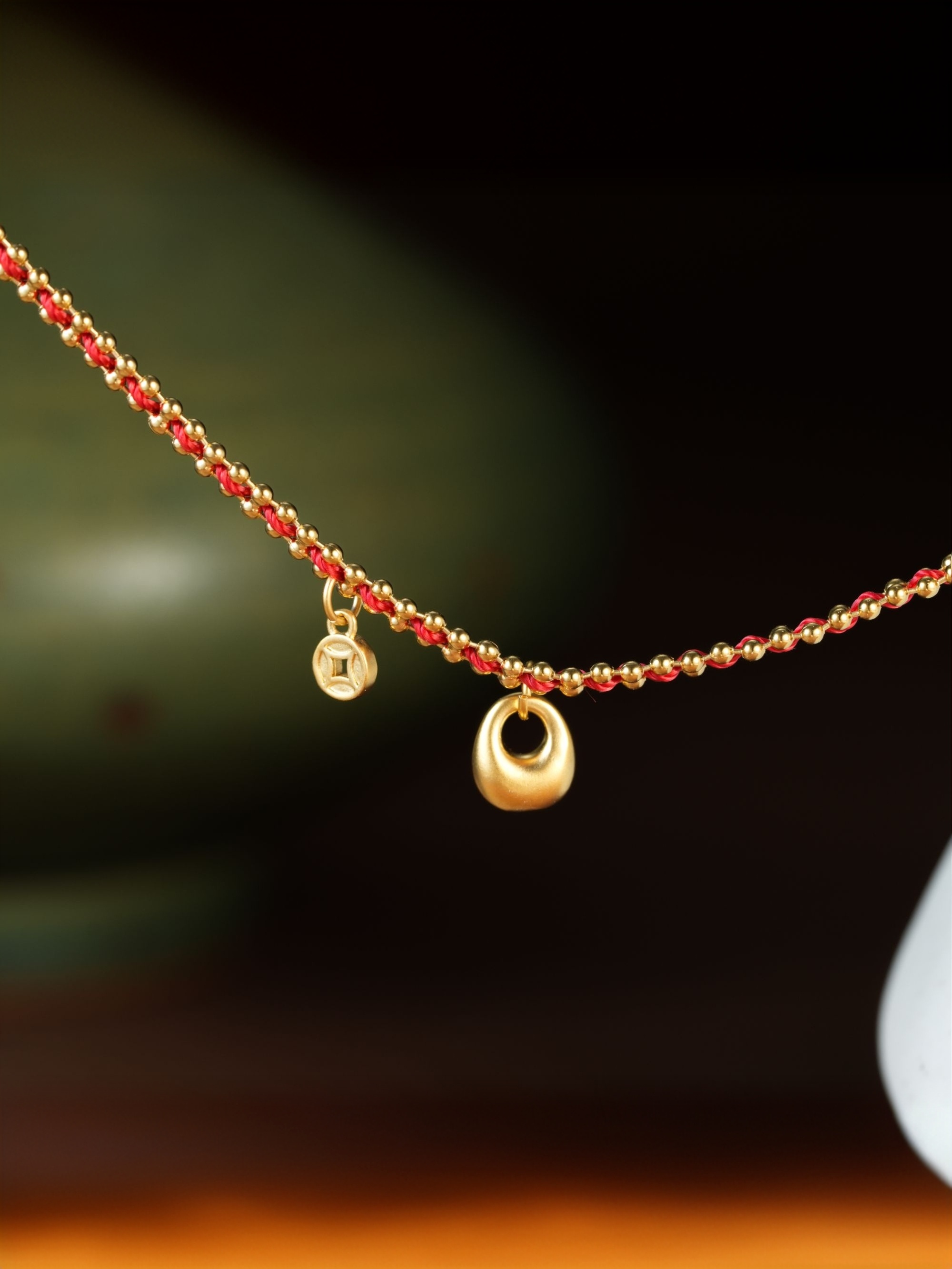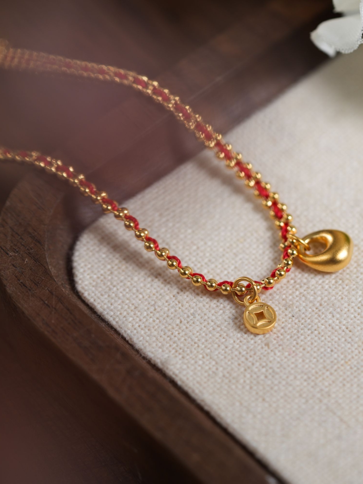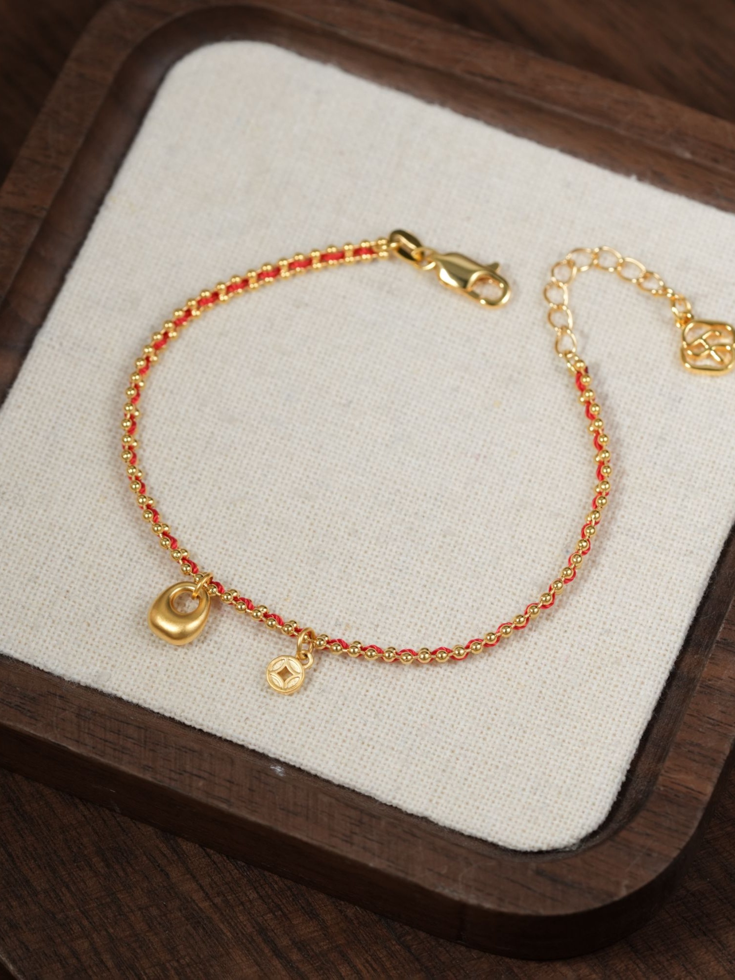 设计感新中式福包铜钱红色编织绳手链时尚饰品