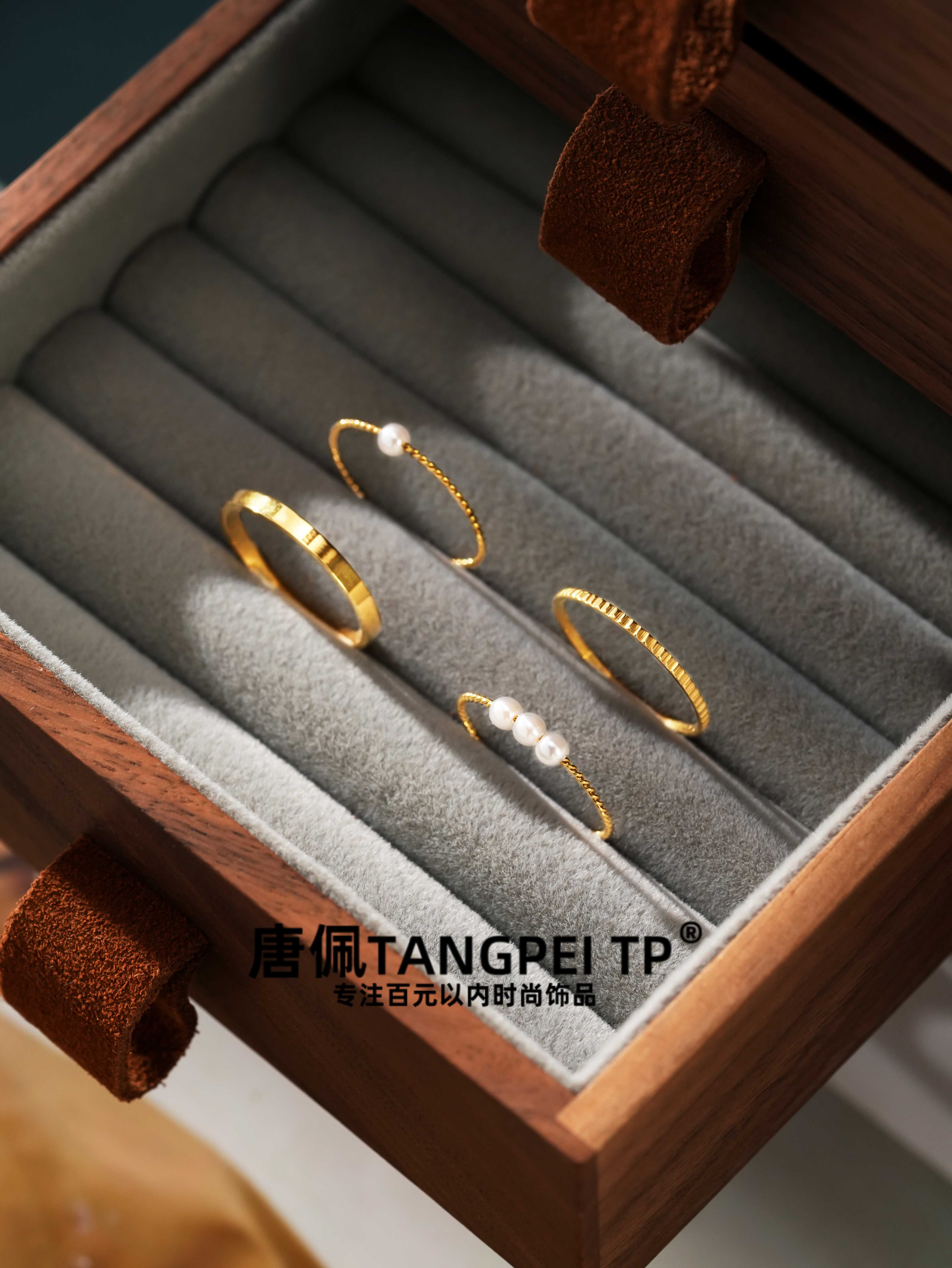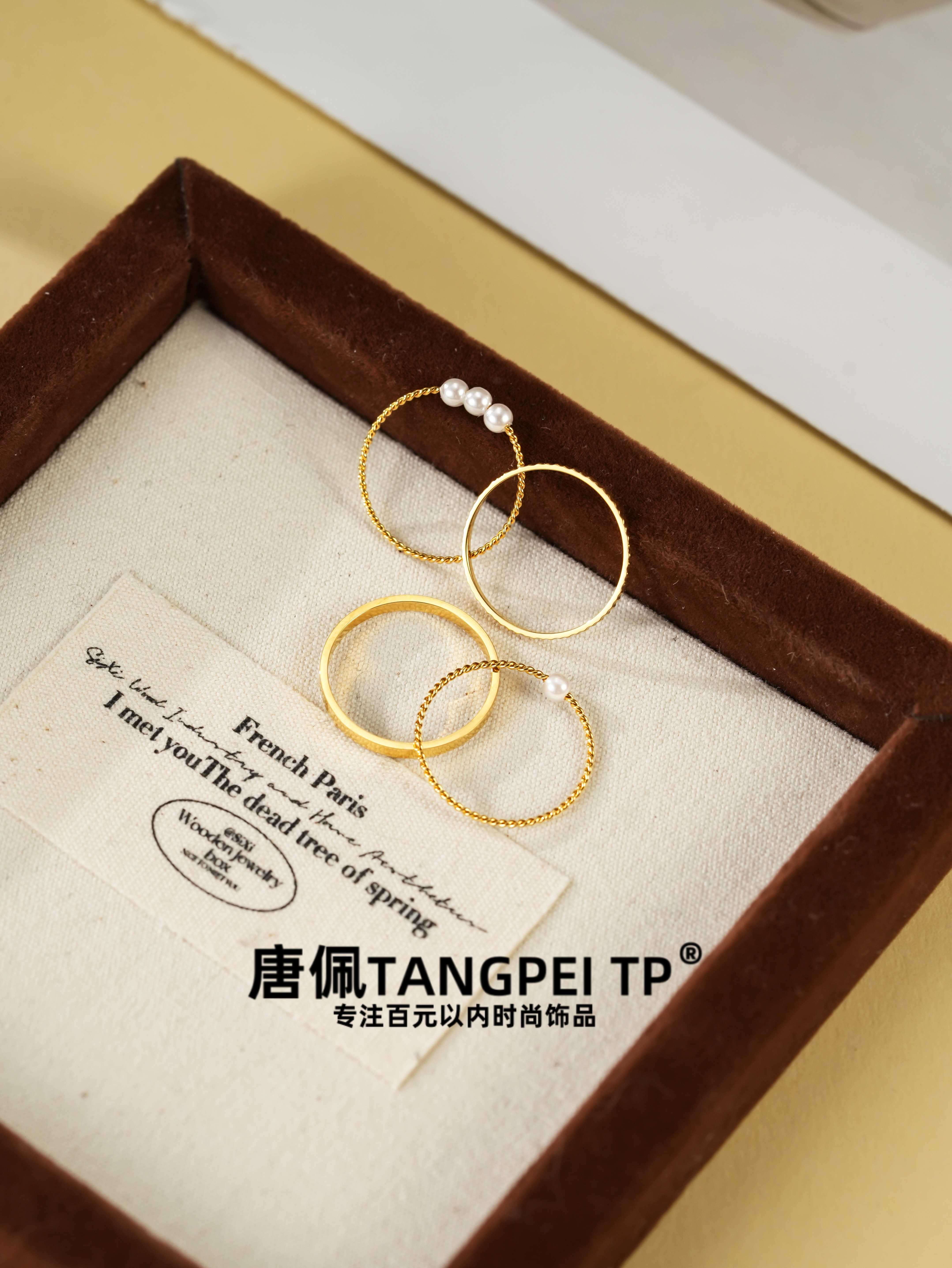 设计感 简约通勤素圈戒指珠珠戒指气质时尚饰品