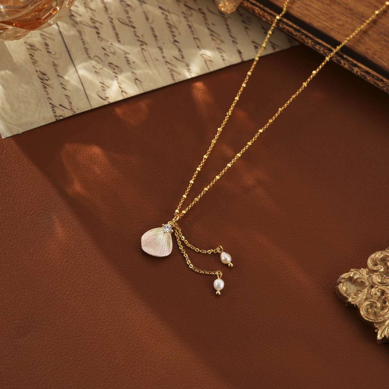 复古贝壳珠珠项链气质设计感女小众时尚饰品