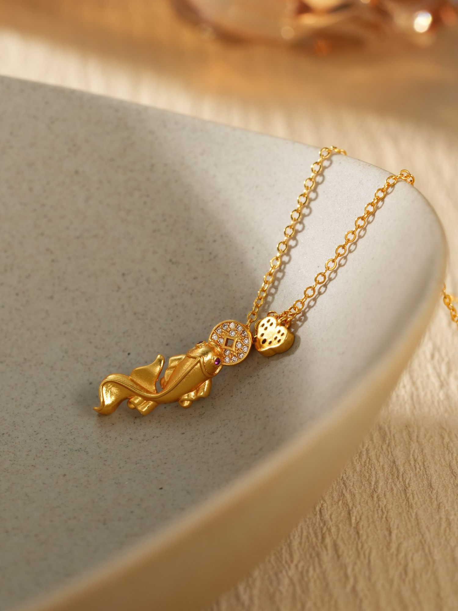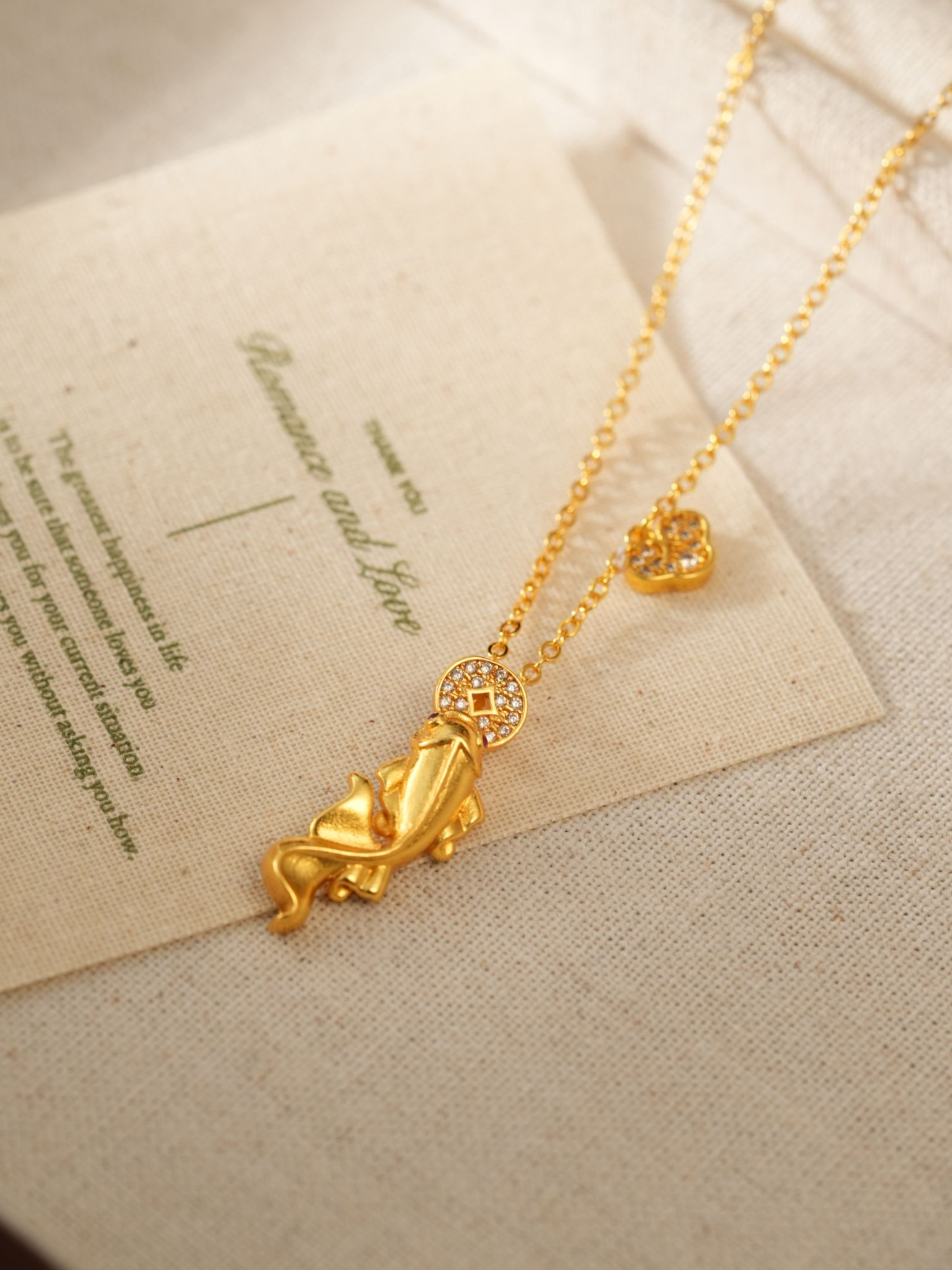 设计感复古《年年有鱼》锦鲤铜钱项链个性小众时尚饰品