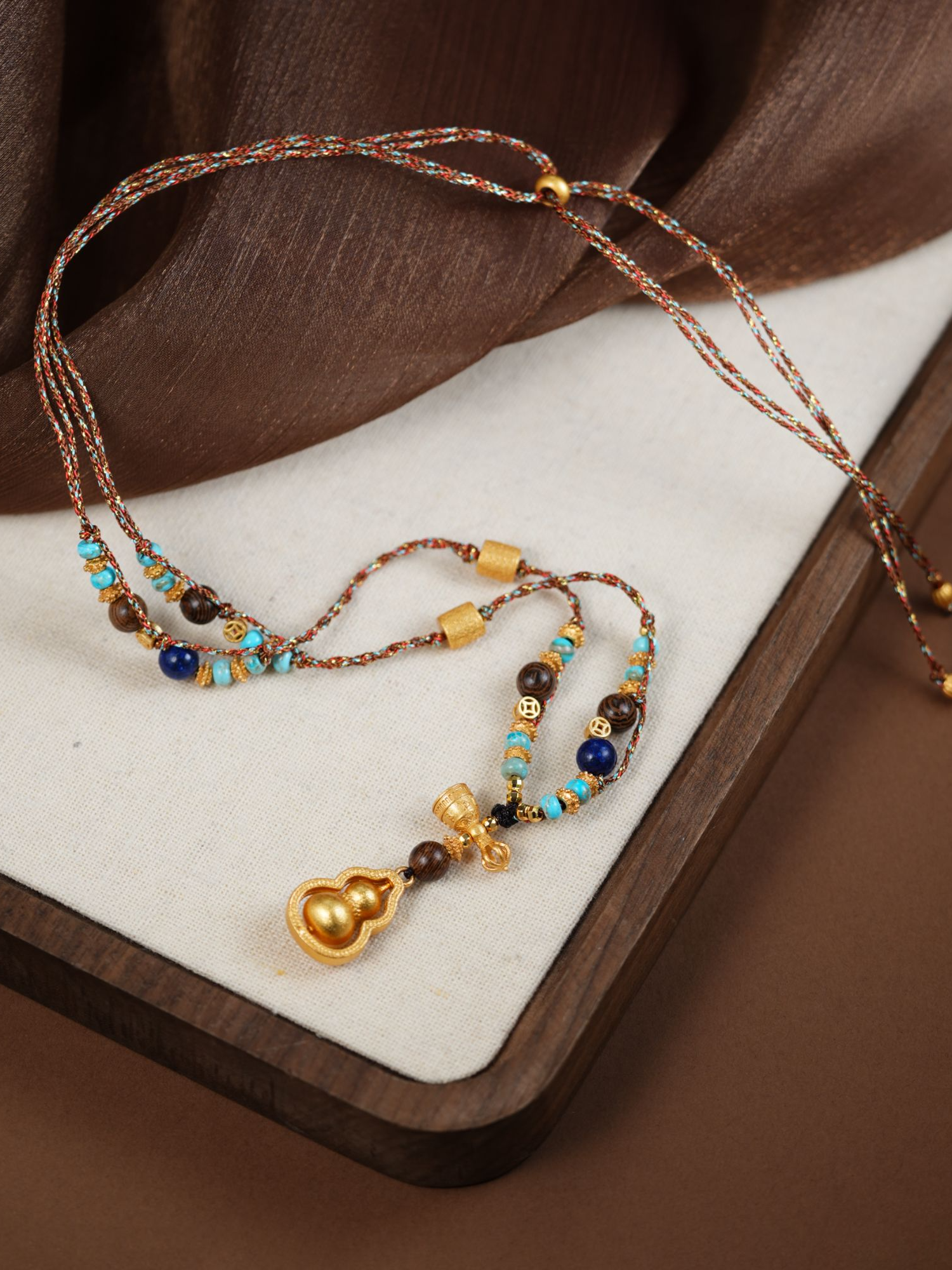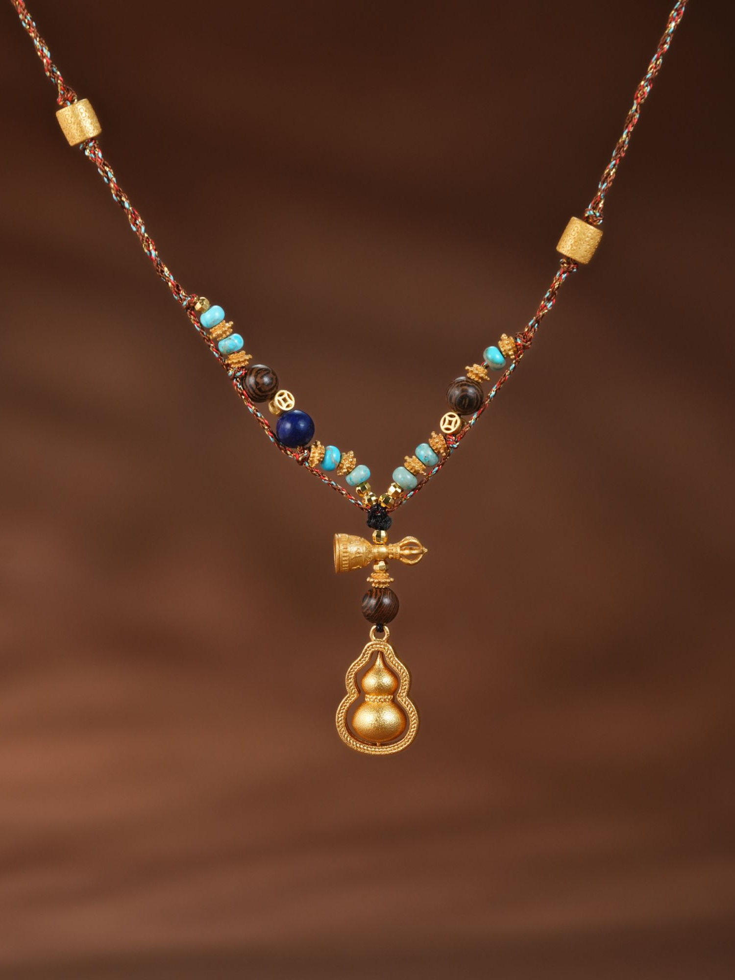 设计感 新中式美拉德串珠葫芦吊坠项链时尚饰品