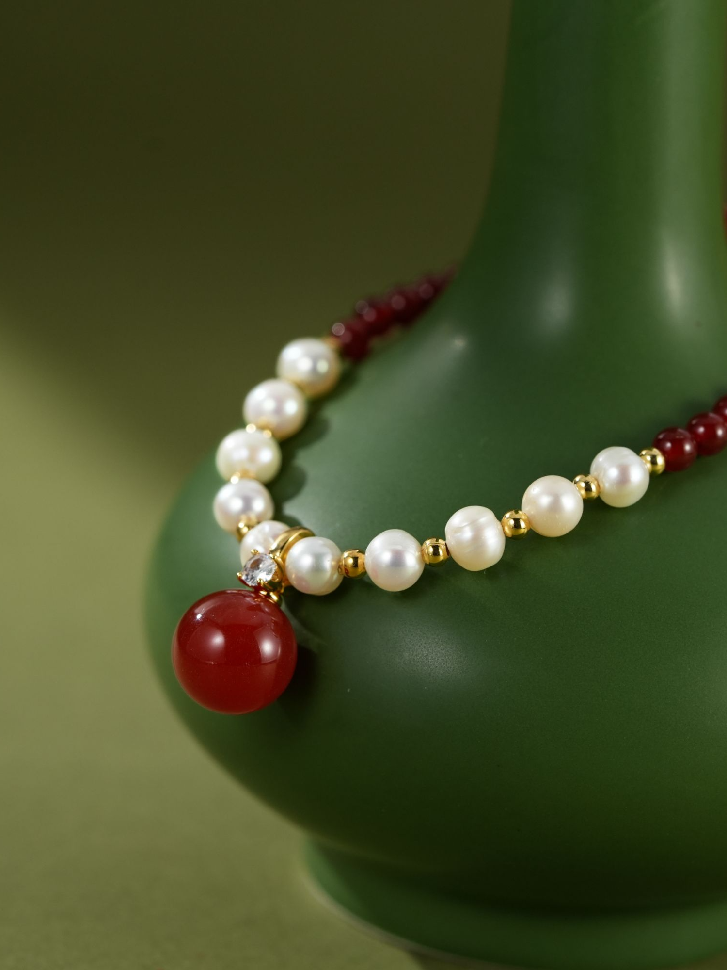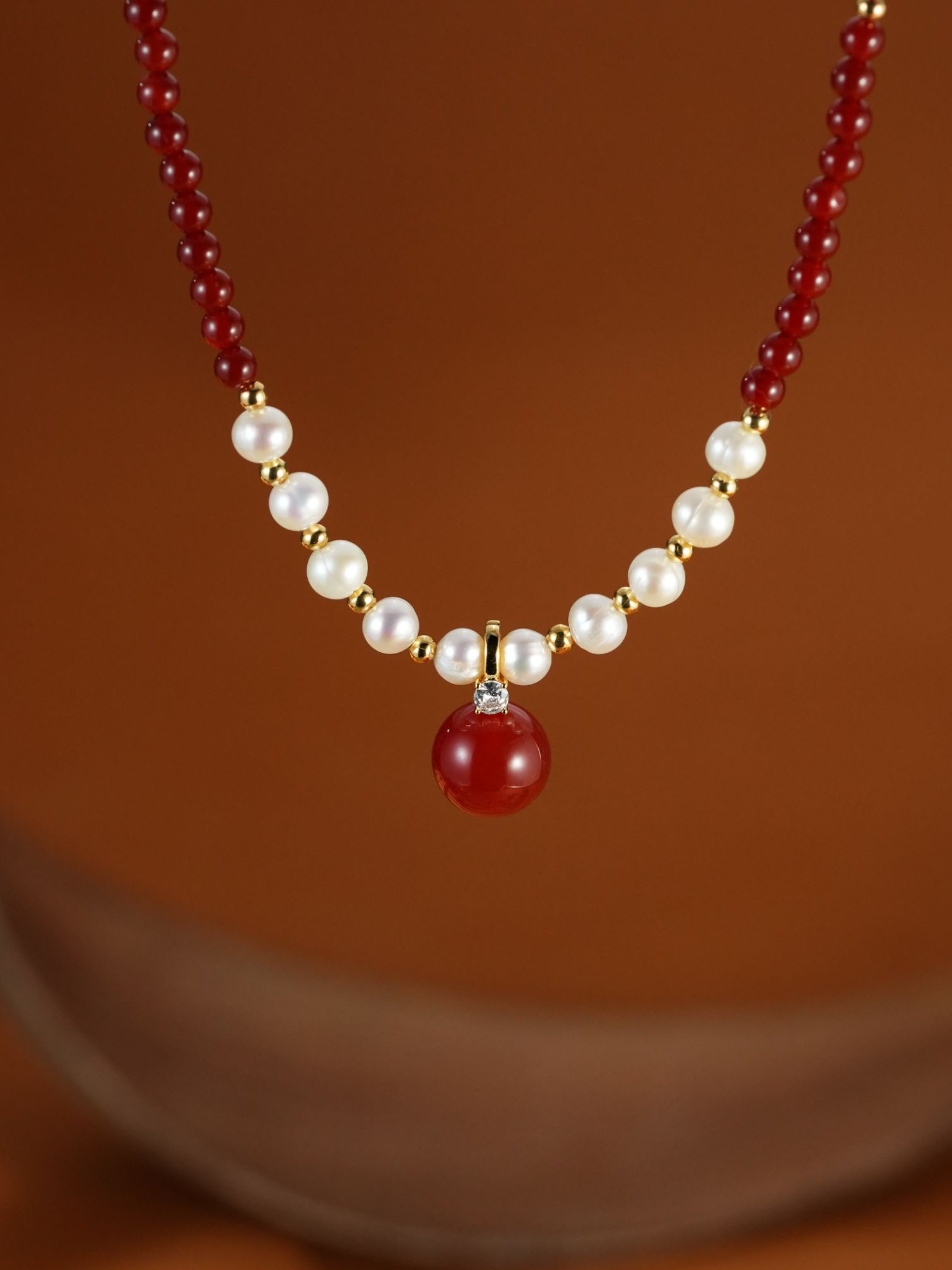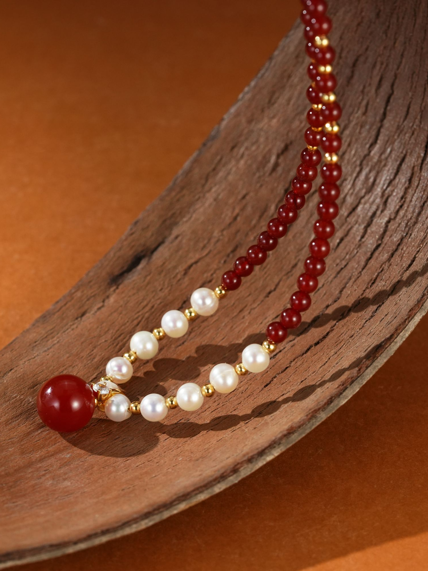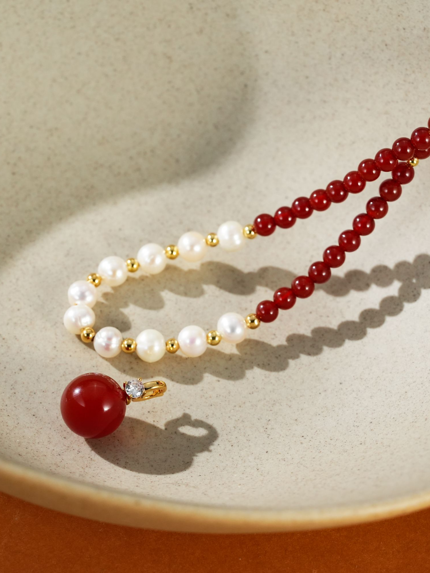 设计感法式安克拉红白串珠拼接项链时尚饰品