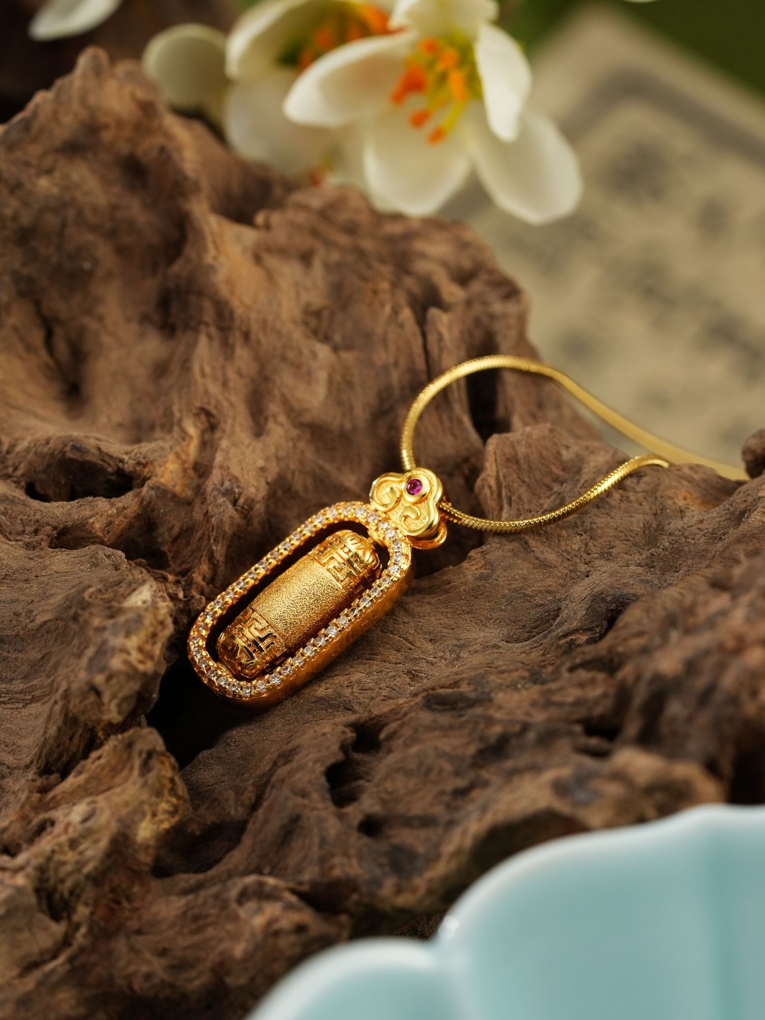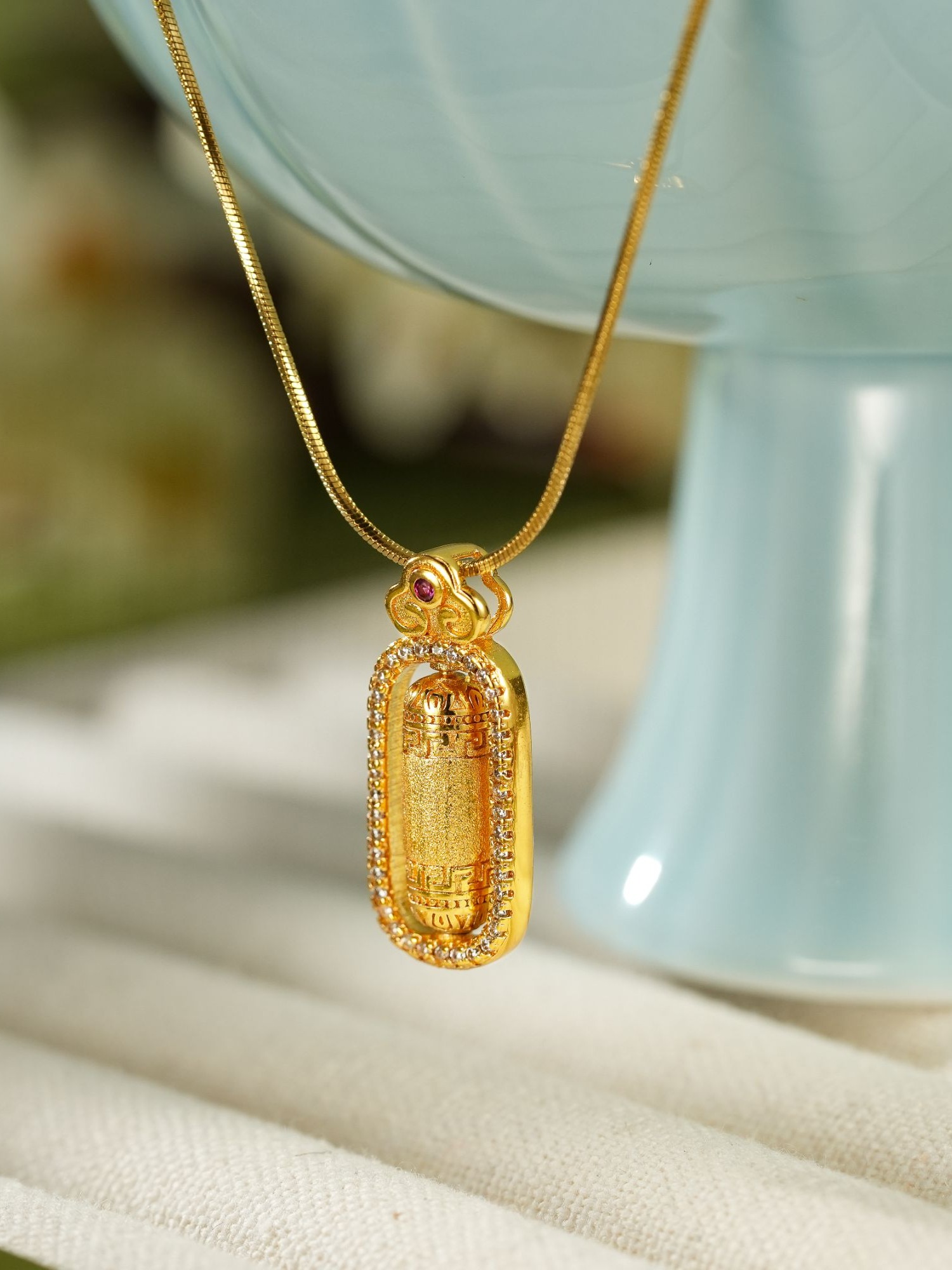 设计感新中式祥云拉丝回纹柱金刚杵项链国风时尚饰品
