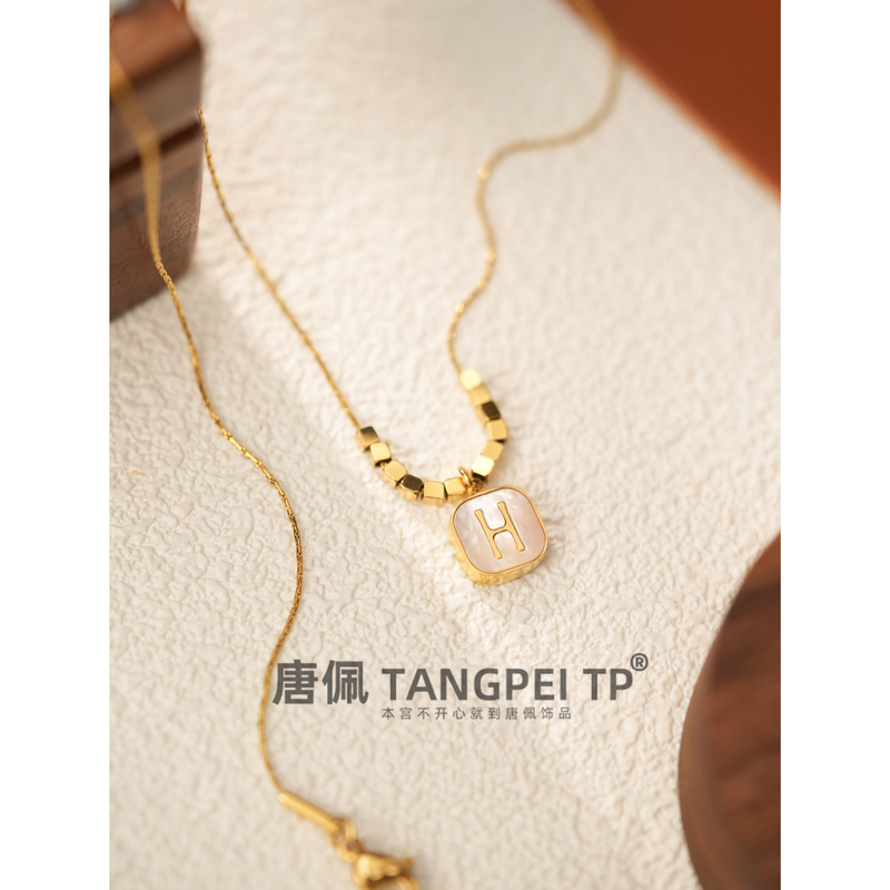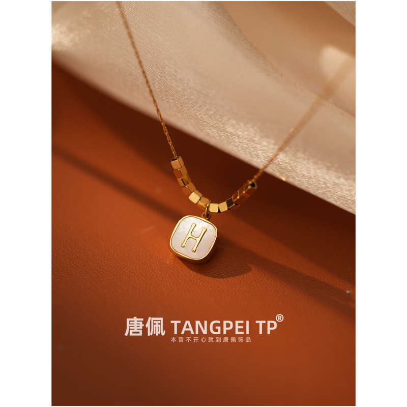 设计感H字母项链小方块小巧精致百搭饰品简约气质时尚
