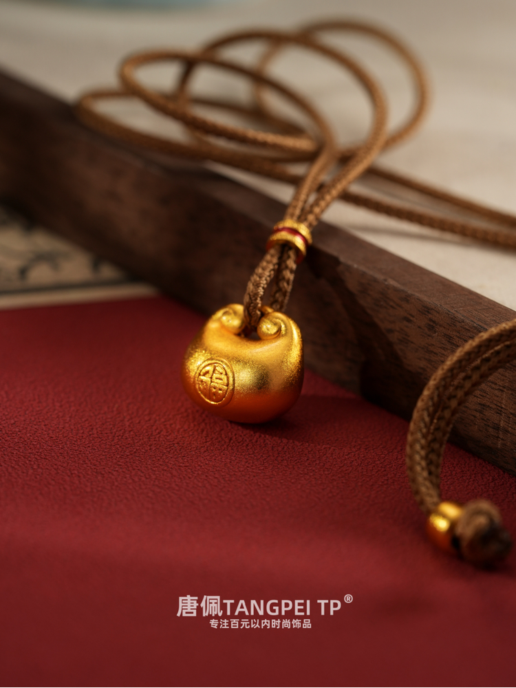 设计感新中式祥云小胖福福包项链简约时尚饰品