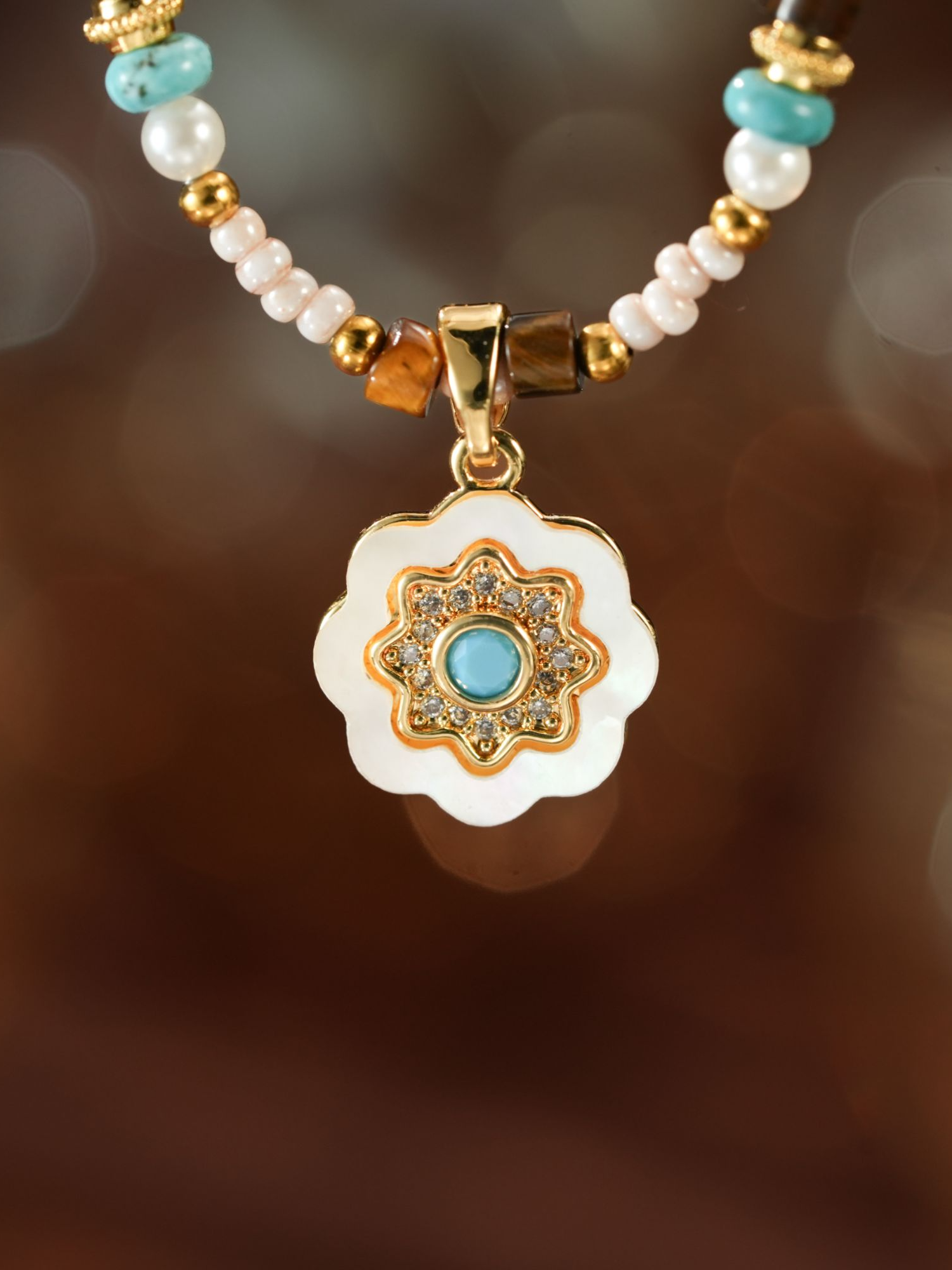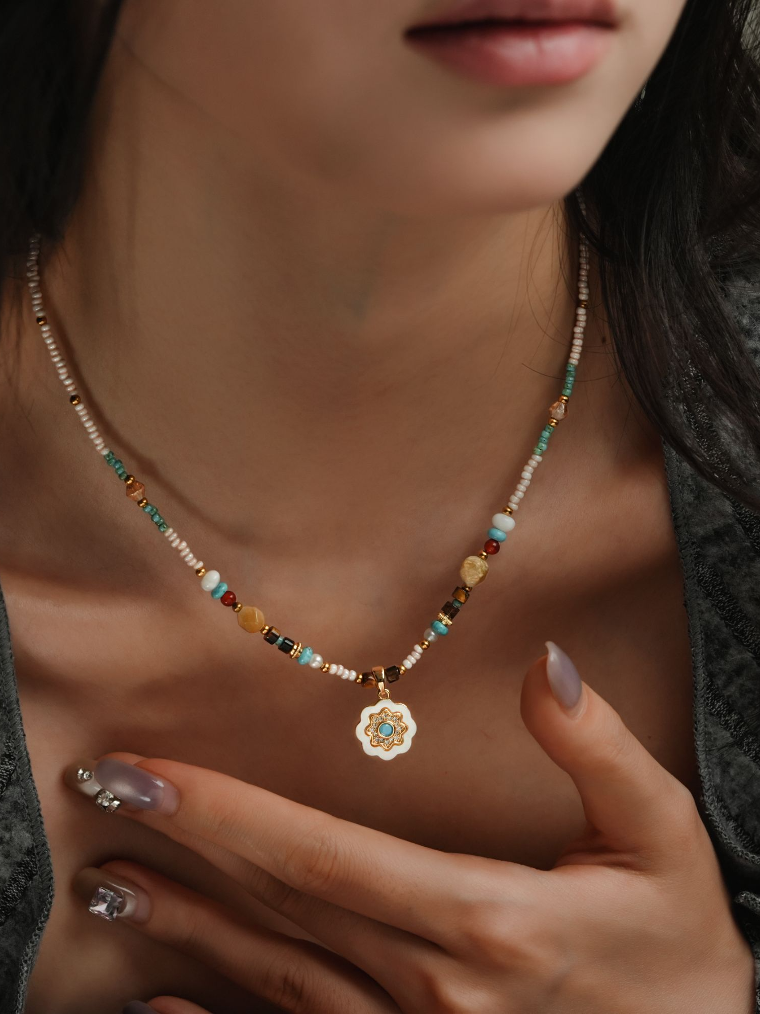 设计感复古多巴胺串珠太阳花吊坠项链时尚饰品